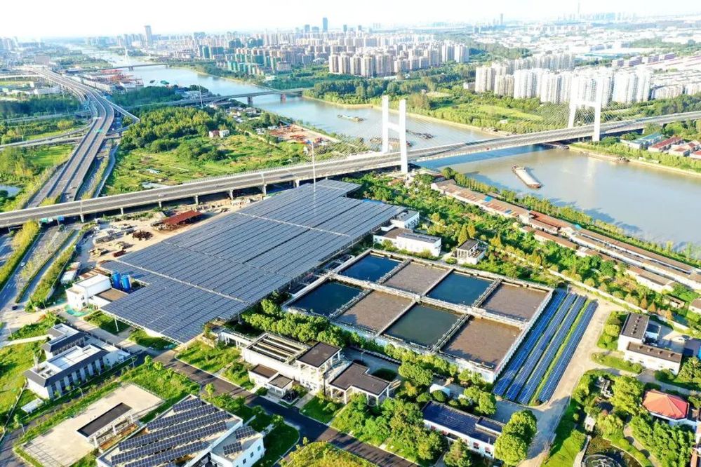 在推進“無廢工廠”建設(shè)過程中,潔源公司湯汪污水處理廠積極響應(yīng),通過搭建“光伏發(fā)電—污水處理—再生水利用—污泥發(fā)電”循環(huán)經(jīng)濟產(chǎn)業(yè)鏈。利用廠區(qū)屋頂及閑置場地鋪設(shè)光伏板,回收太陽能用于廠區(qū)生產(chǎn)用電,2024年,全年通過光伏發(fā)電共計346萬度,減少約1640噸CO2排放;廠區(qū)再生水作為廠區(qū)生產(chǎn)、清潔用水,光伏板沖洗用水,全年廠區(qū)再生水利用總量約130萬噸;脫水后的污泥送至揚州中法環(huán)境公司進行干化后,隨后送往揚州港口污泥發(fā)電有限公司與燃料摻燒發(fā)電,有效利用污泥干化后的熱值,實現(xiàn)固廢資源化利用,成為產(chǎn)業(yè)鏈中的重要一環(huán),環(huán)境效益顯著。